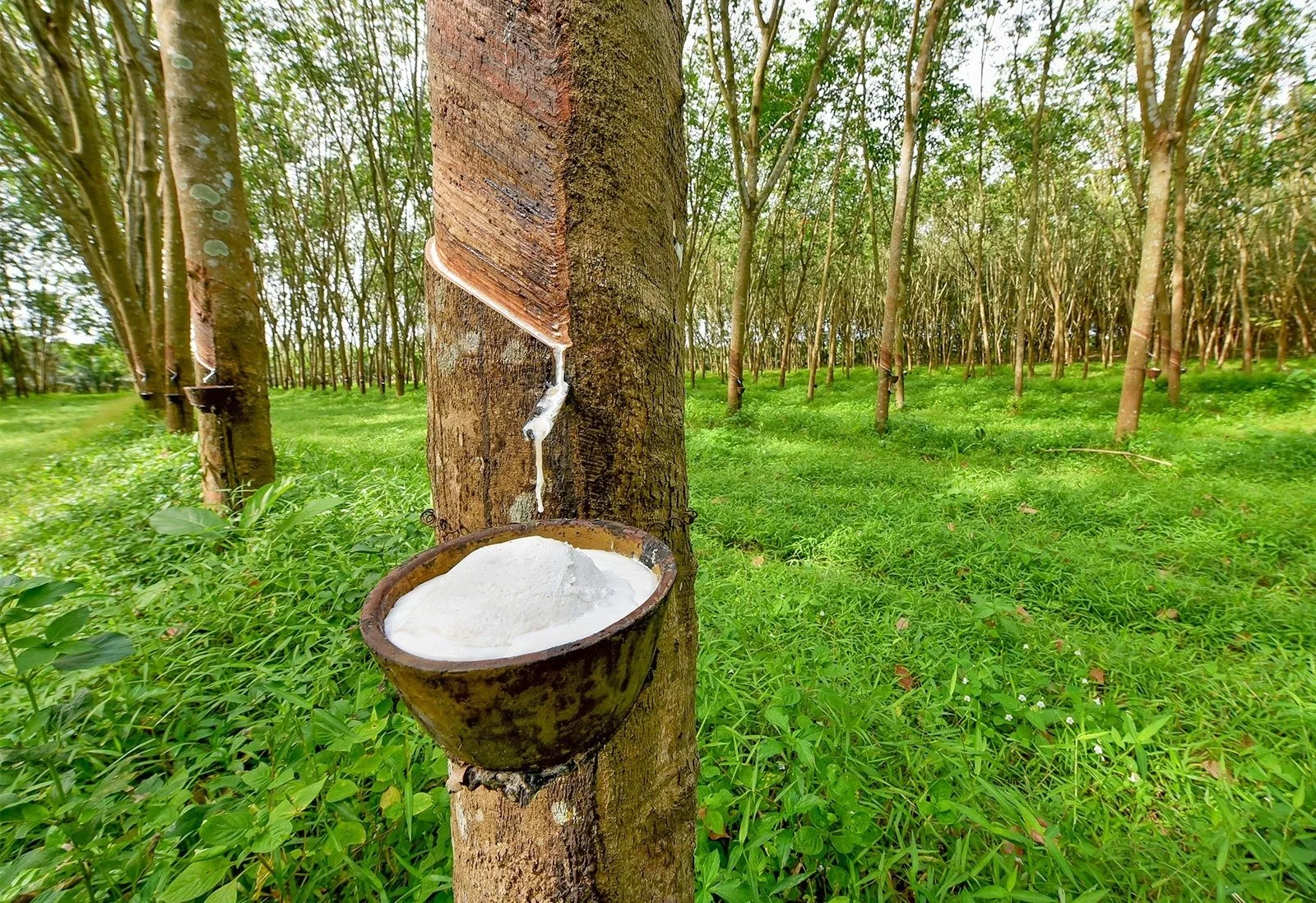 Man tapper kun et forsvarlig mengde latex( latex er rå materiale for naturgummi) fra hvert tre, hver dag; ca 20-30 gram.